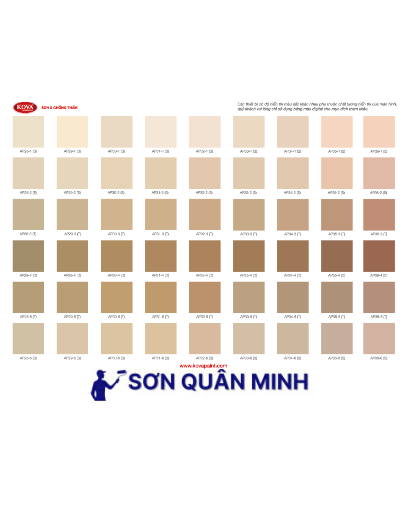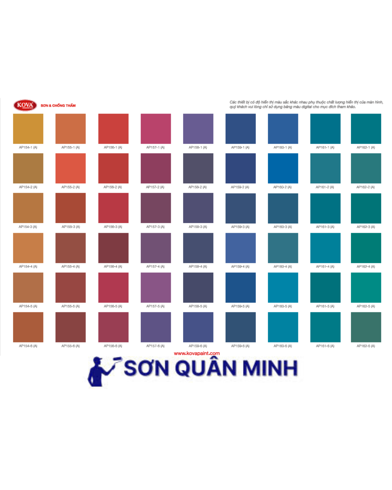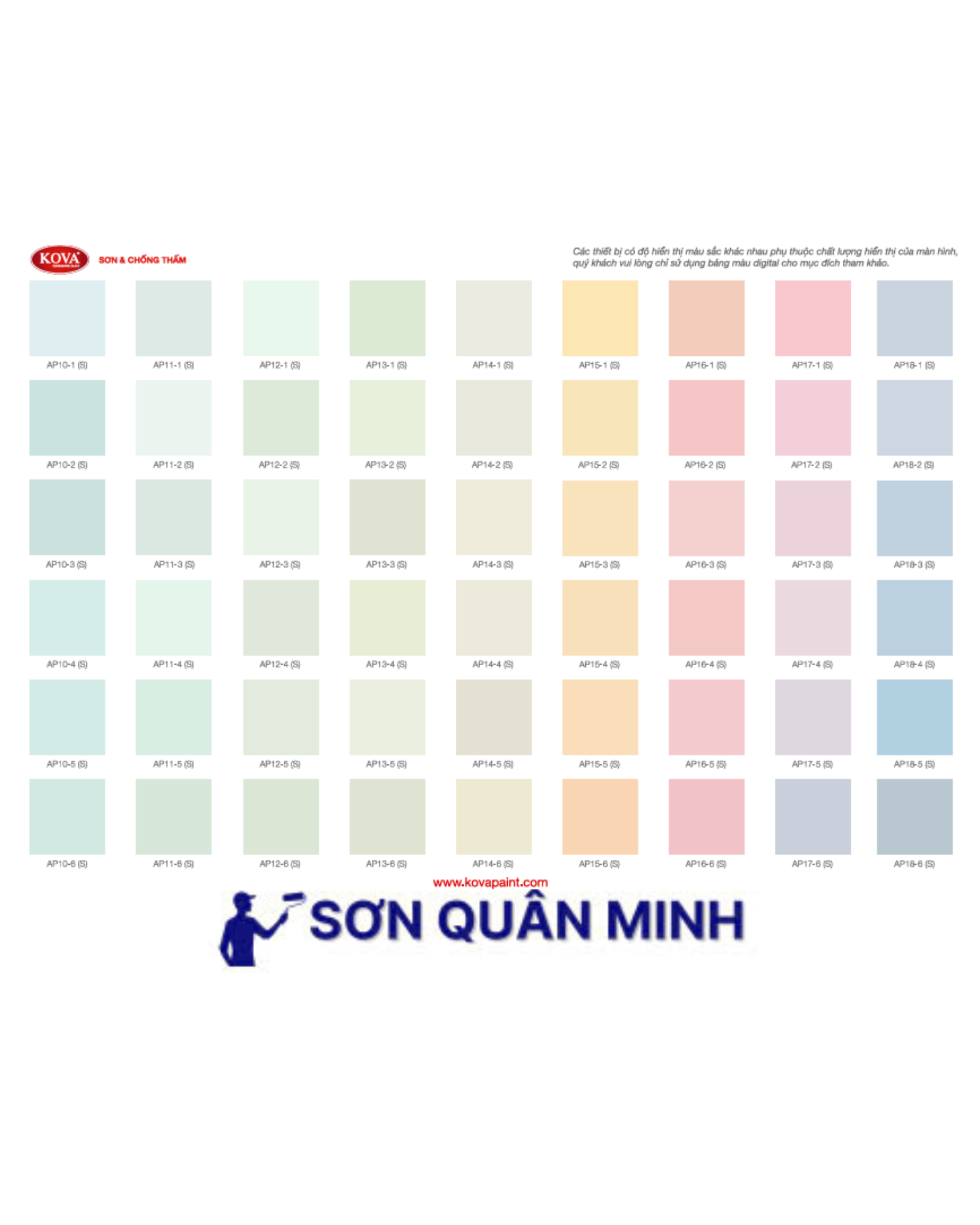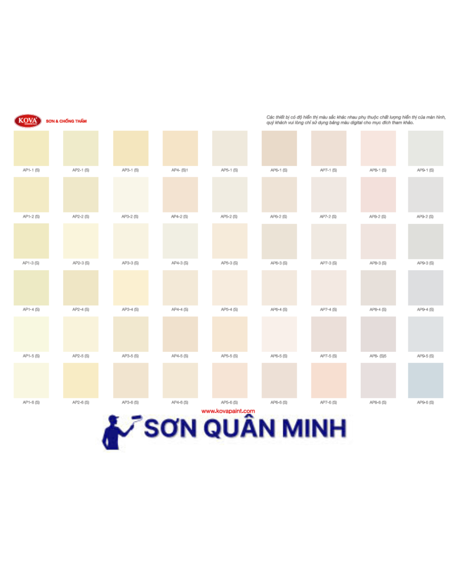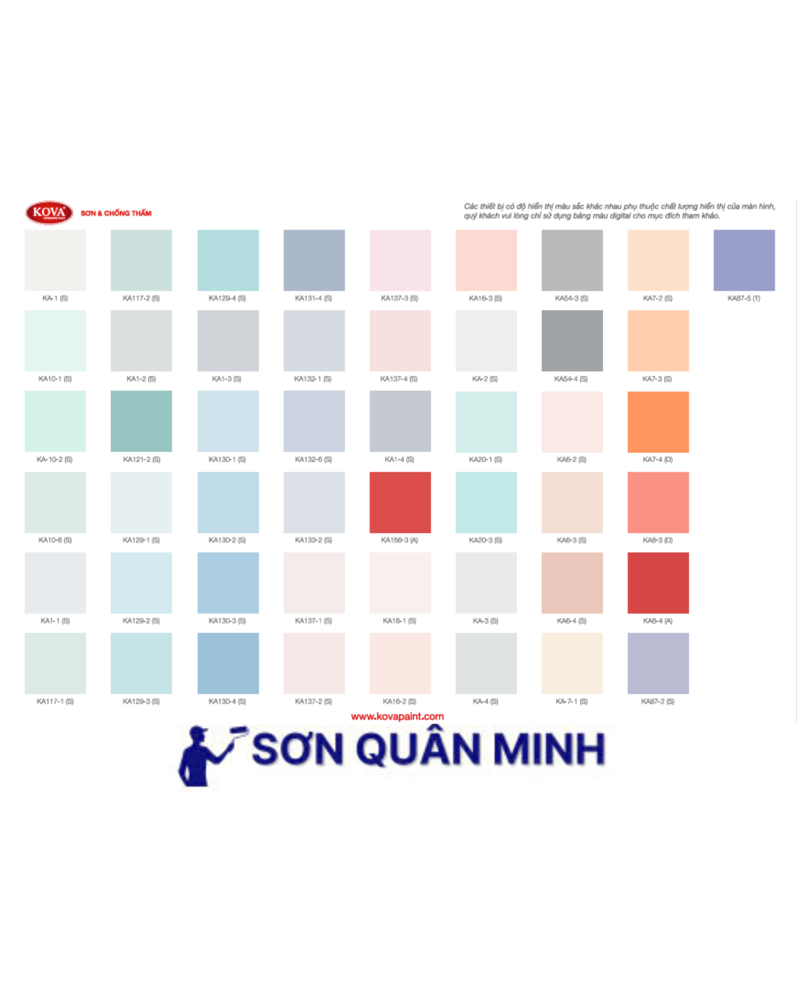 🎨 Bảng màu sơn KOVA