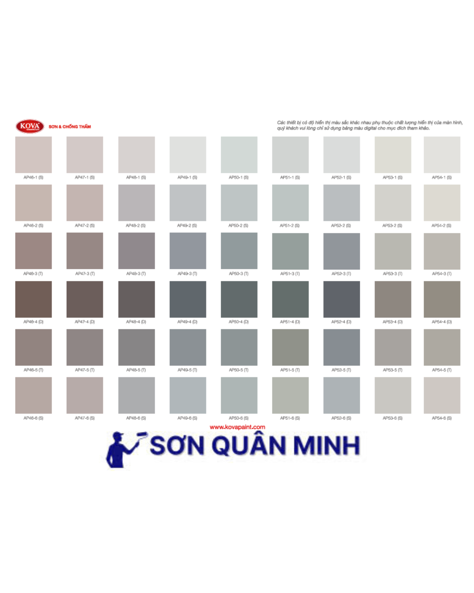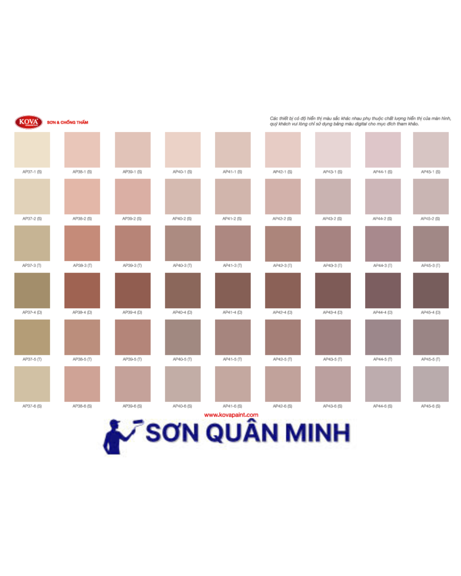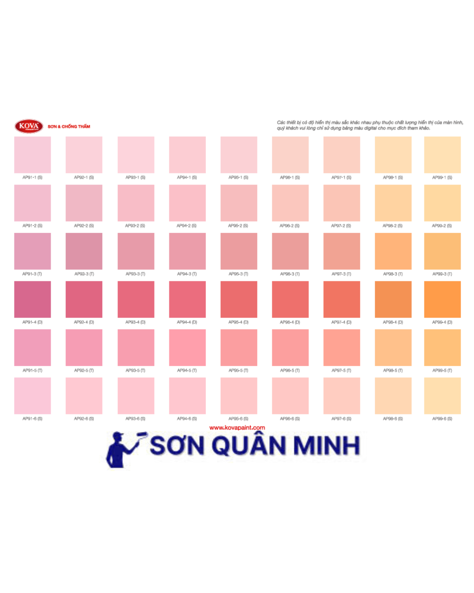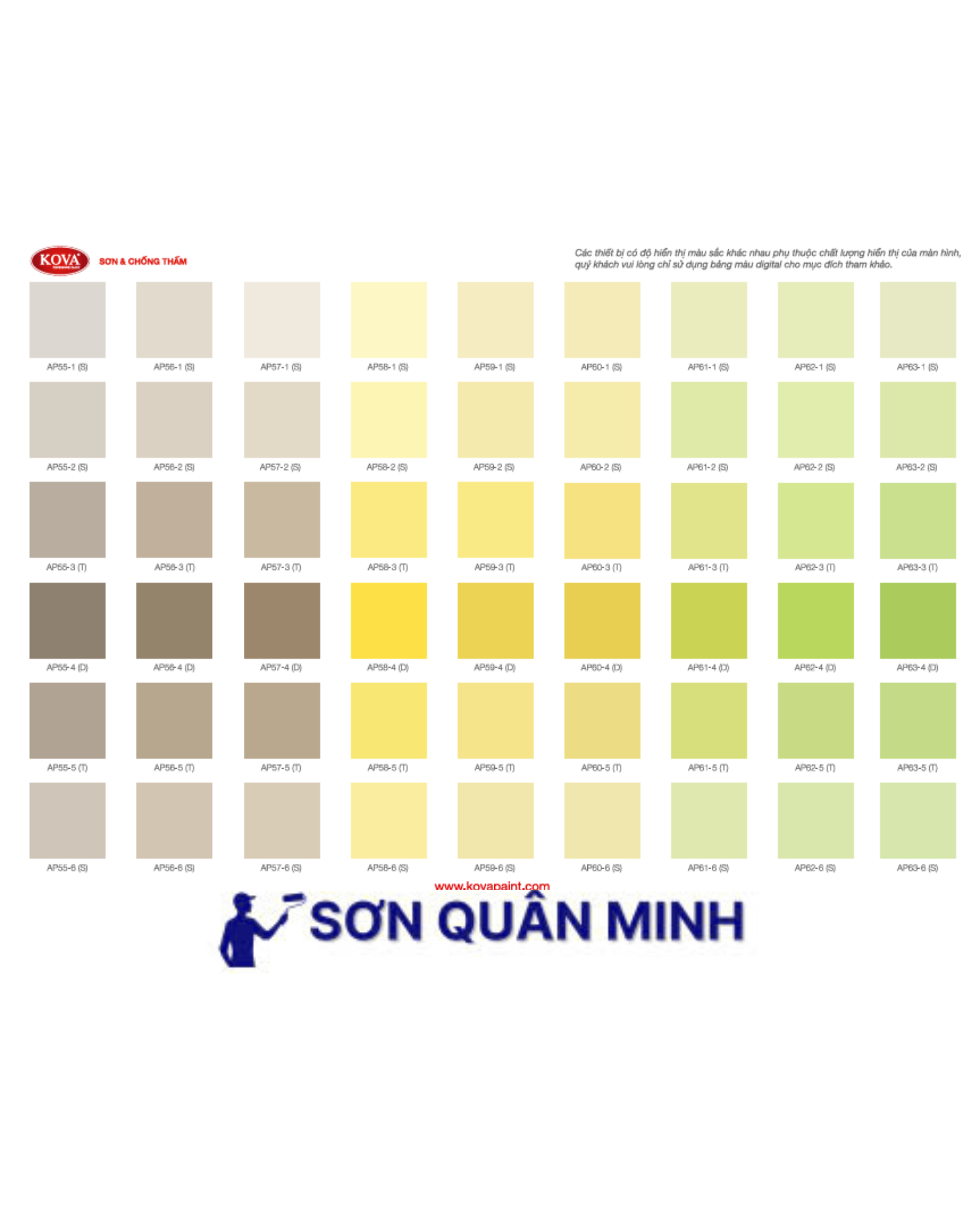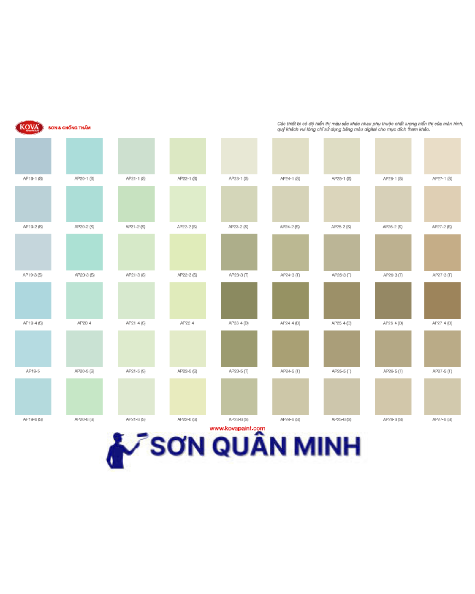 🎨 Bảng màu sơn KOVA