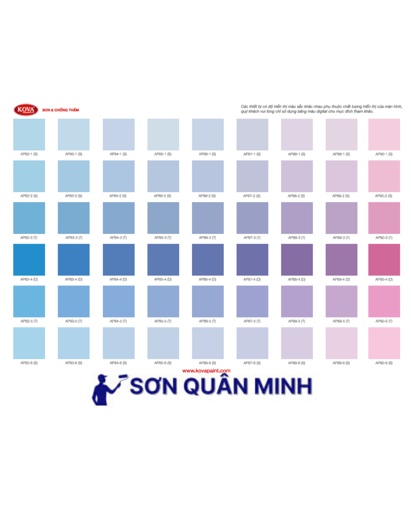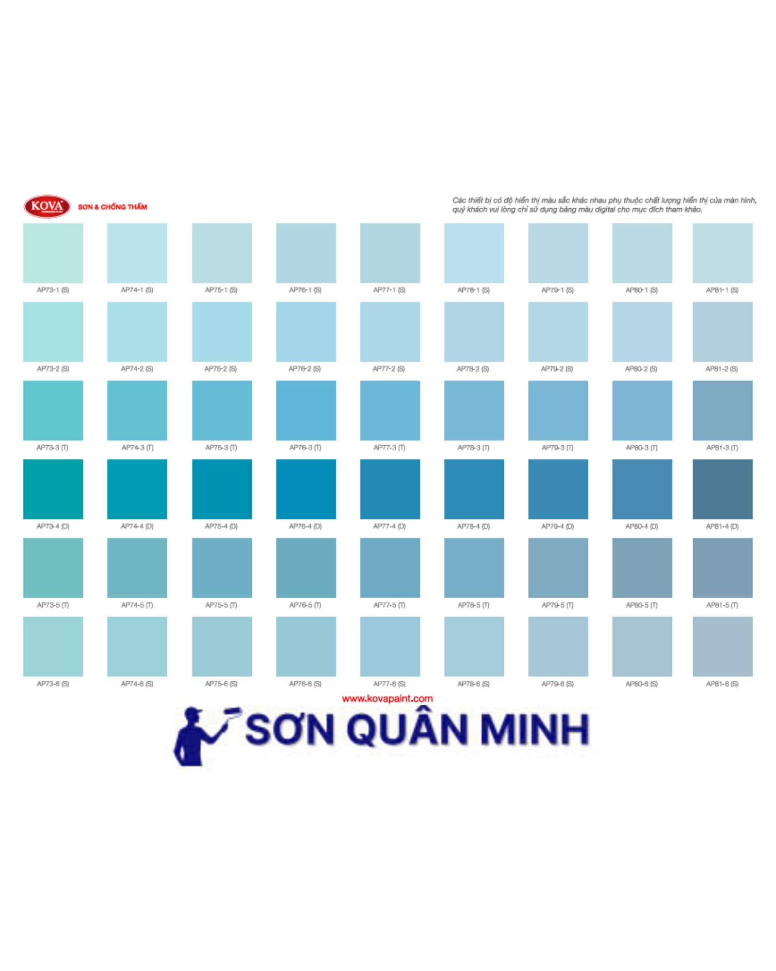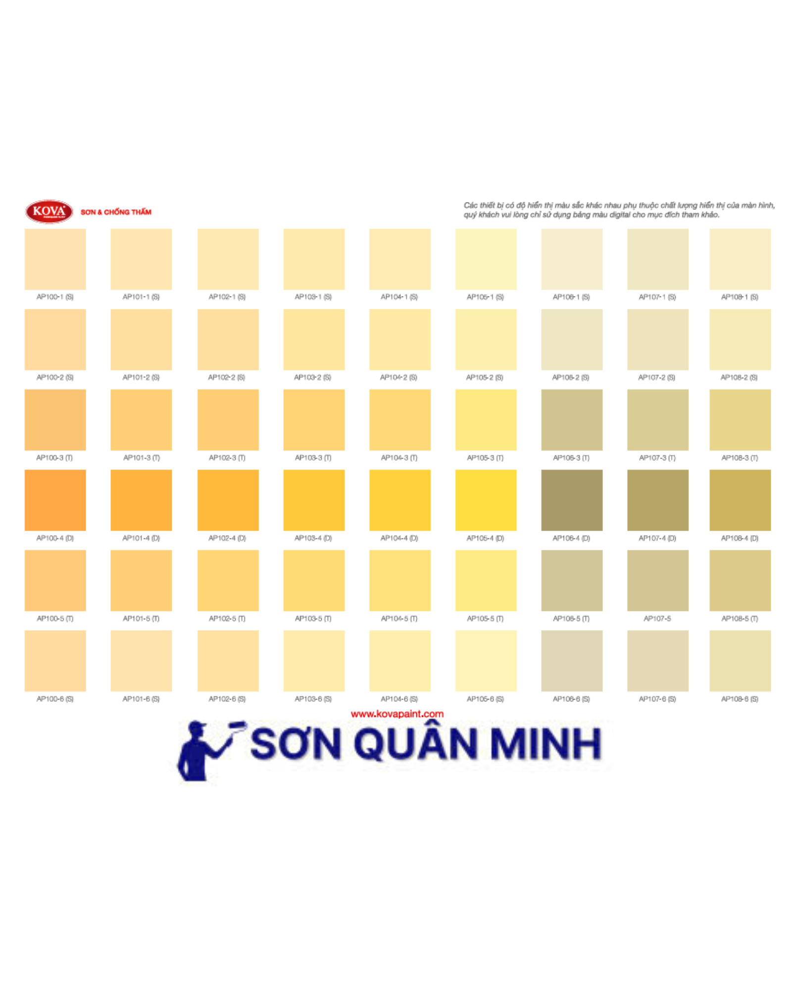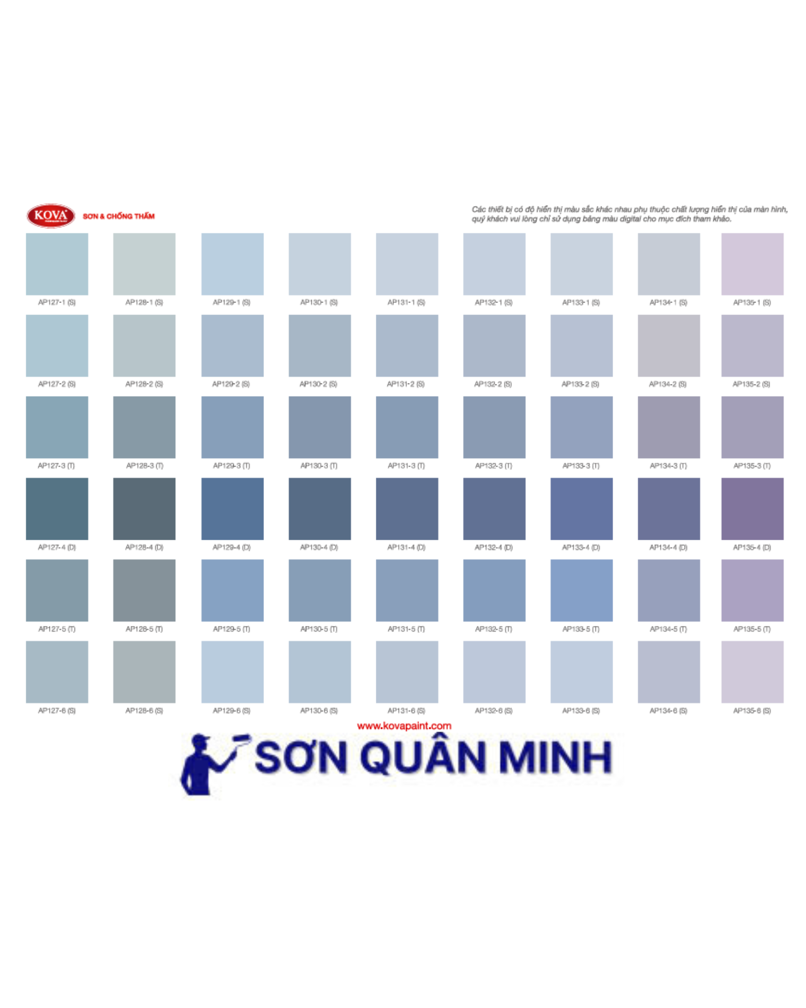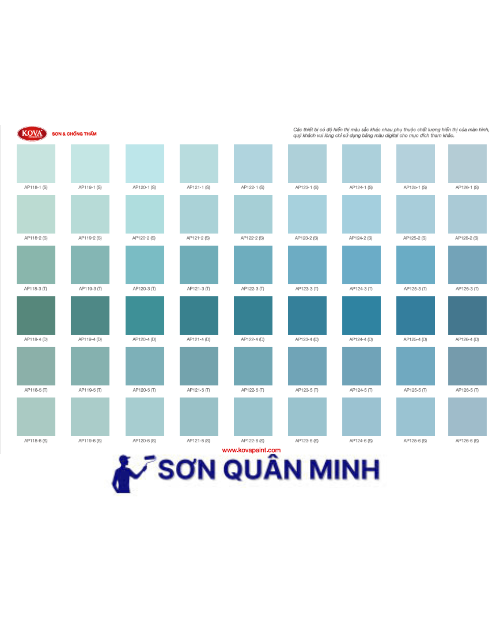 🎨 Bảng màu sơn KOVA