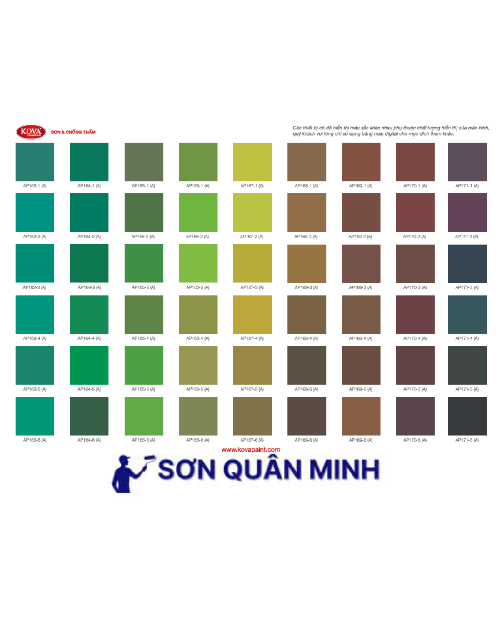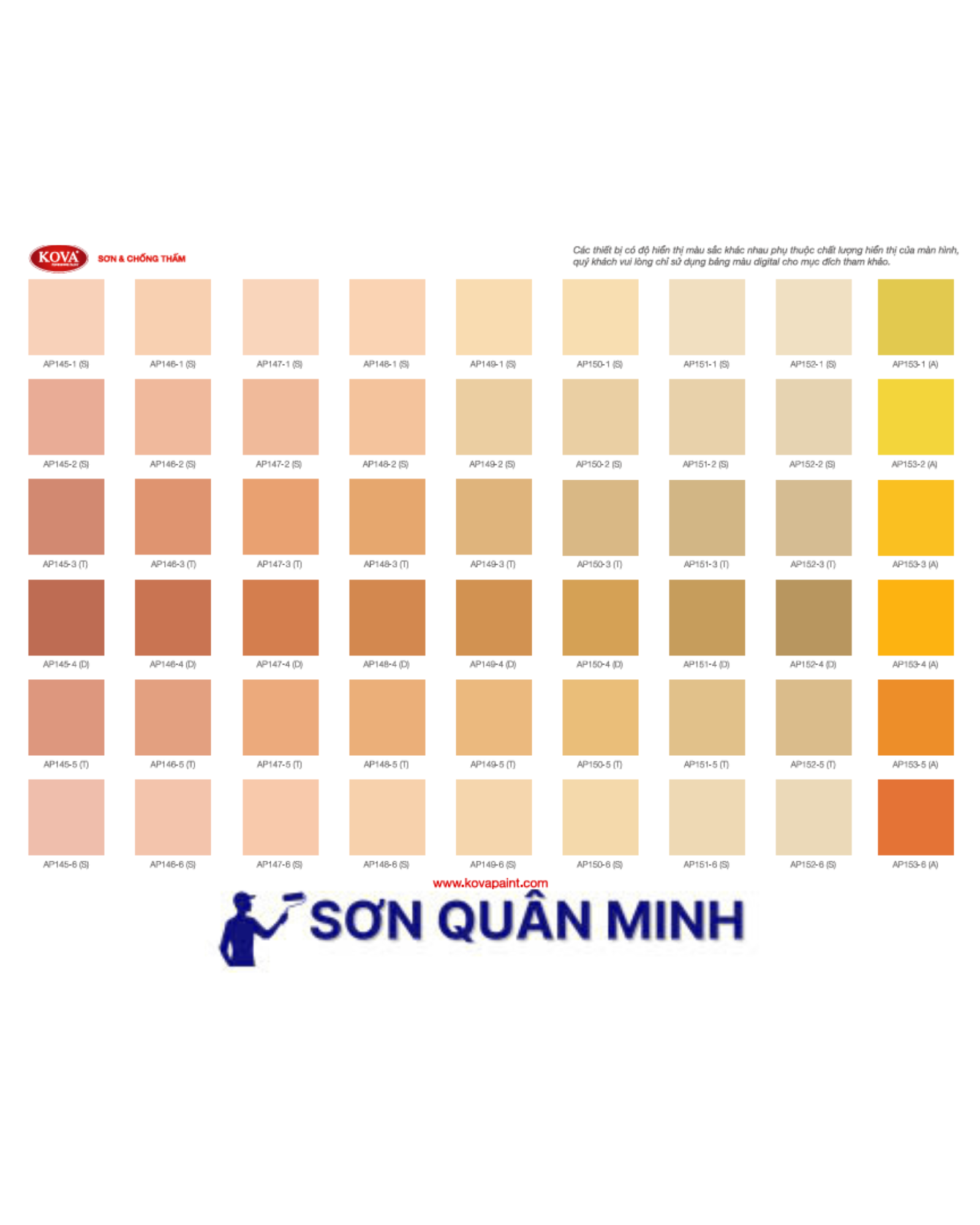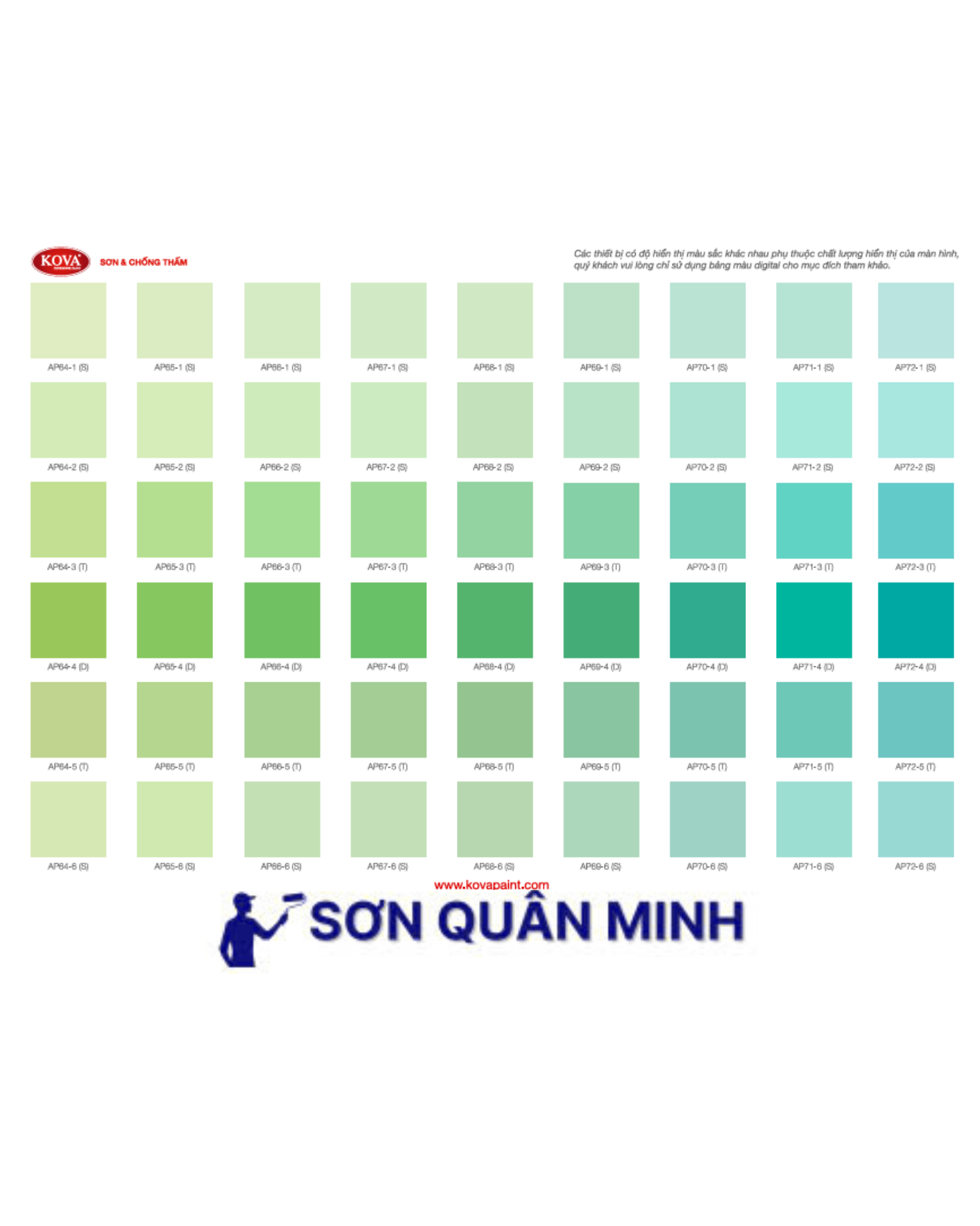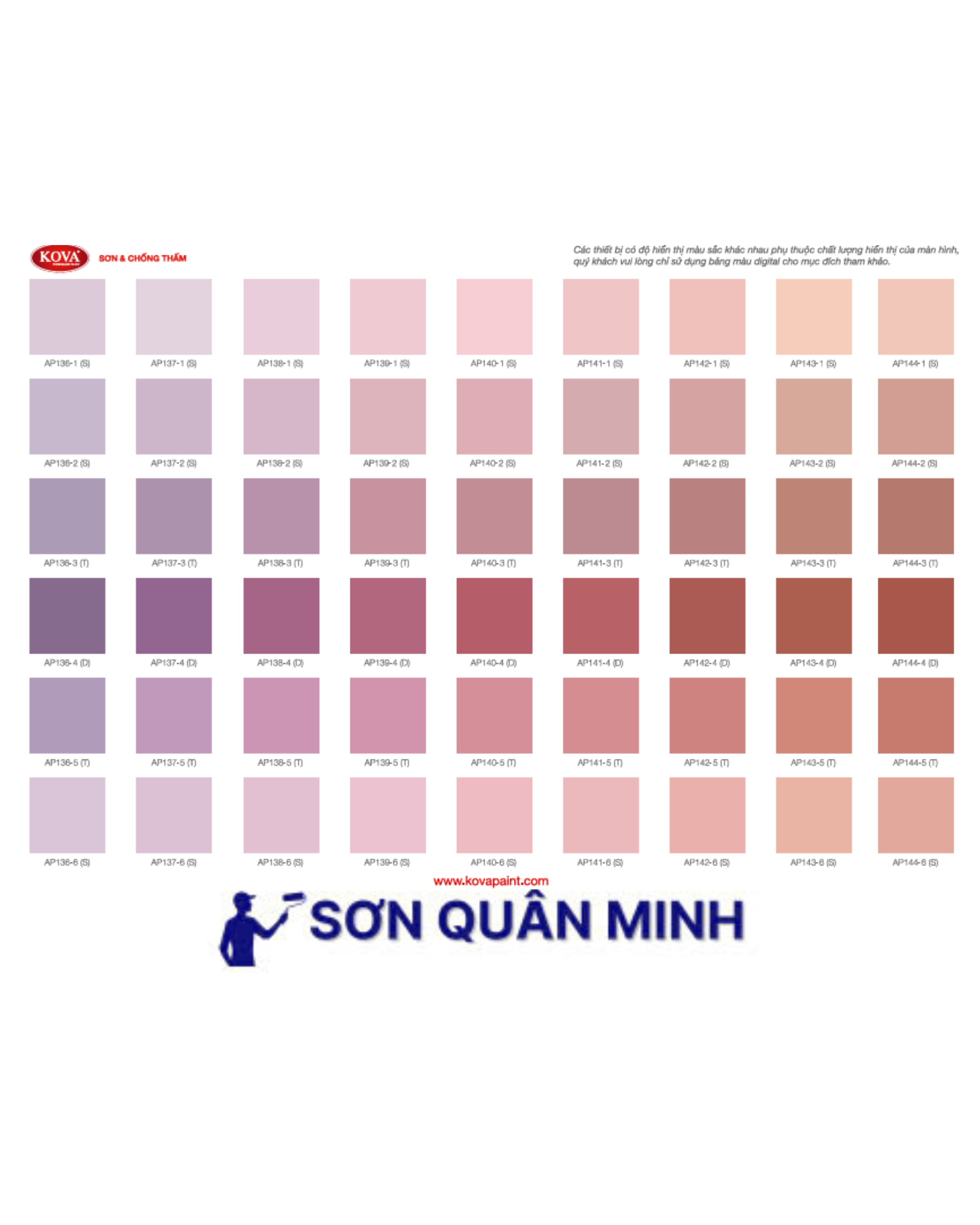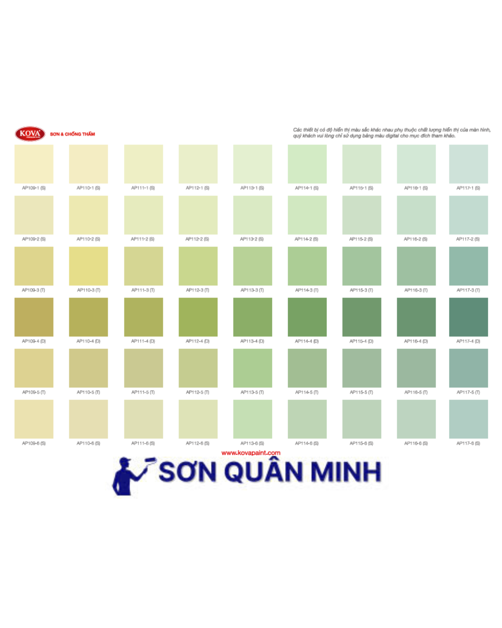 🎨 Bảng màu sơn KOVA