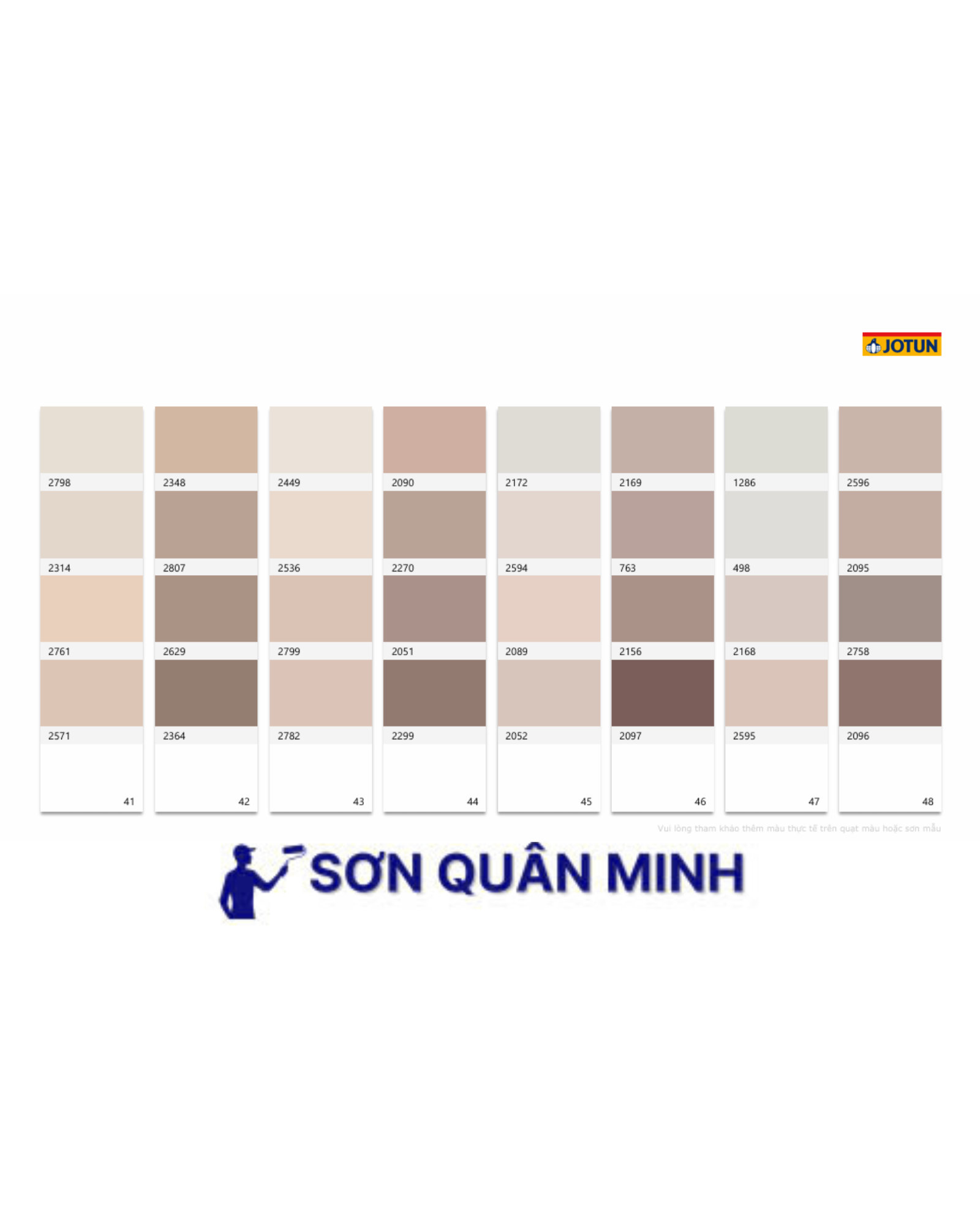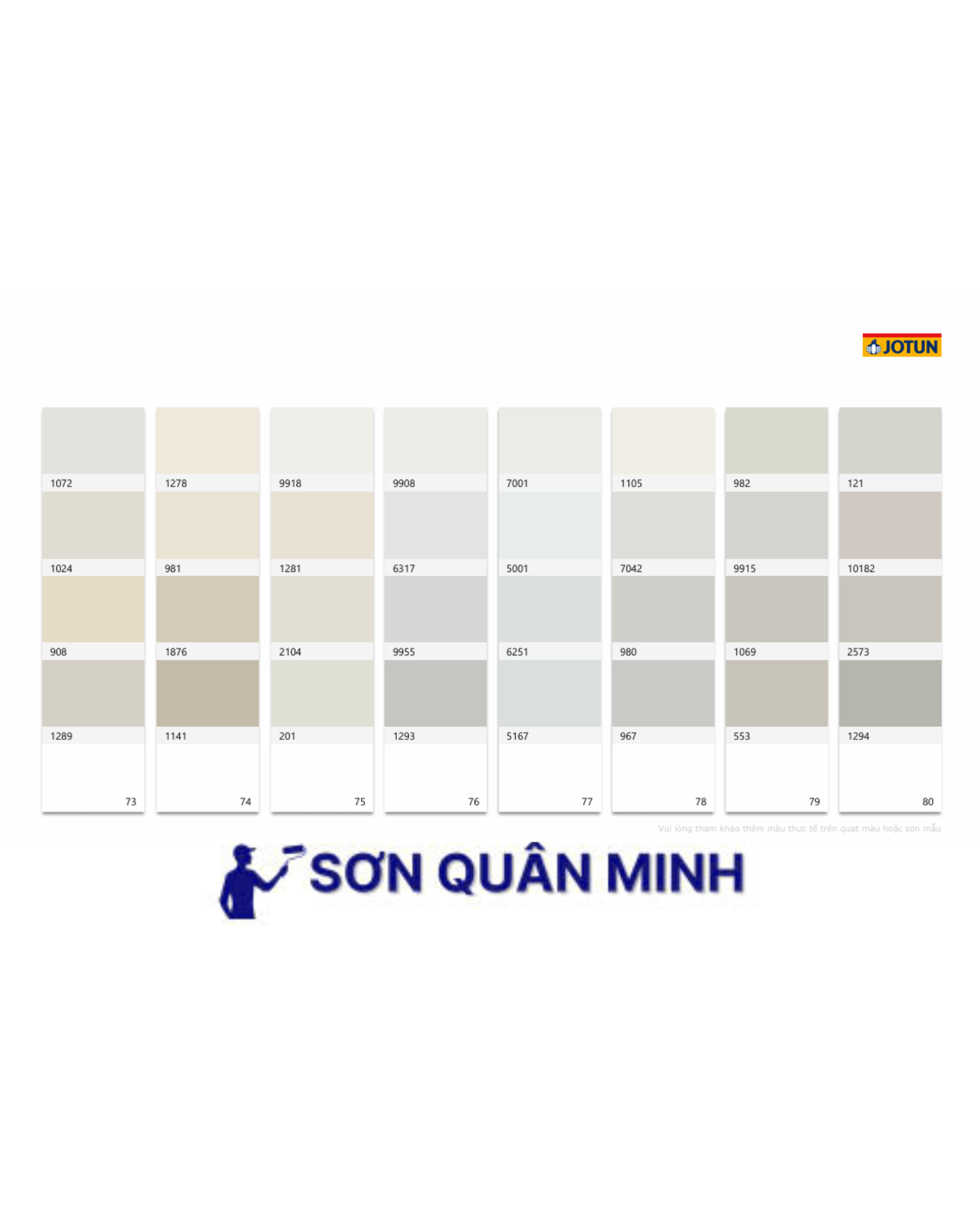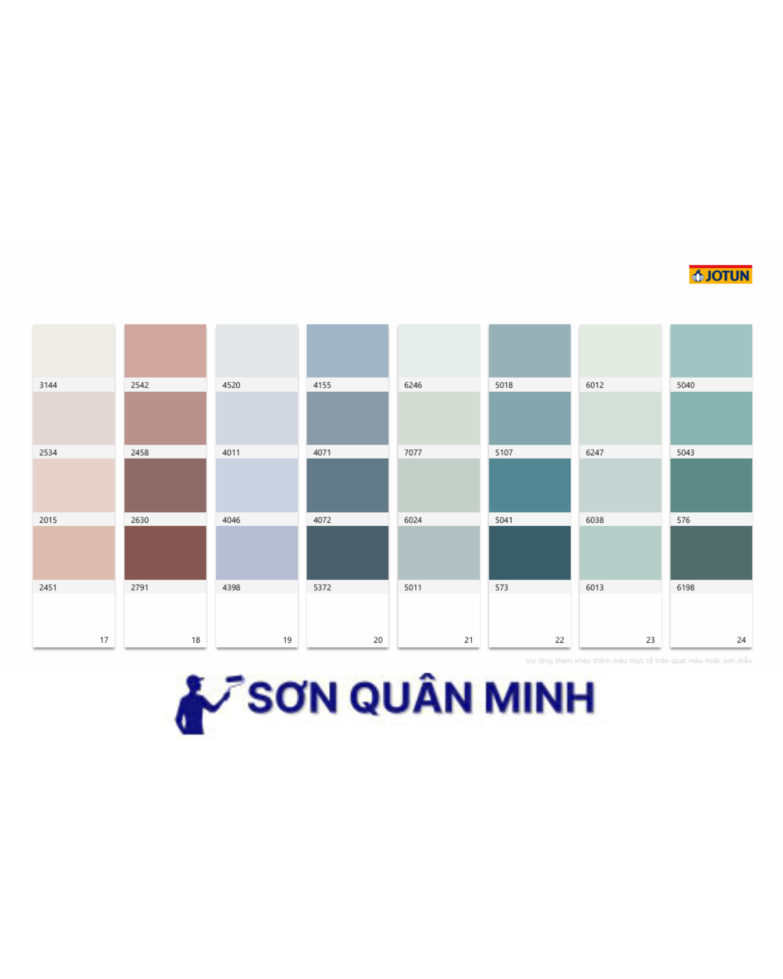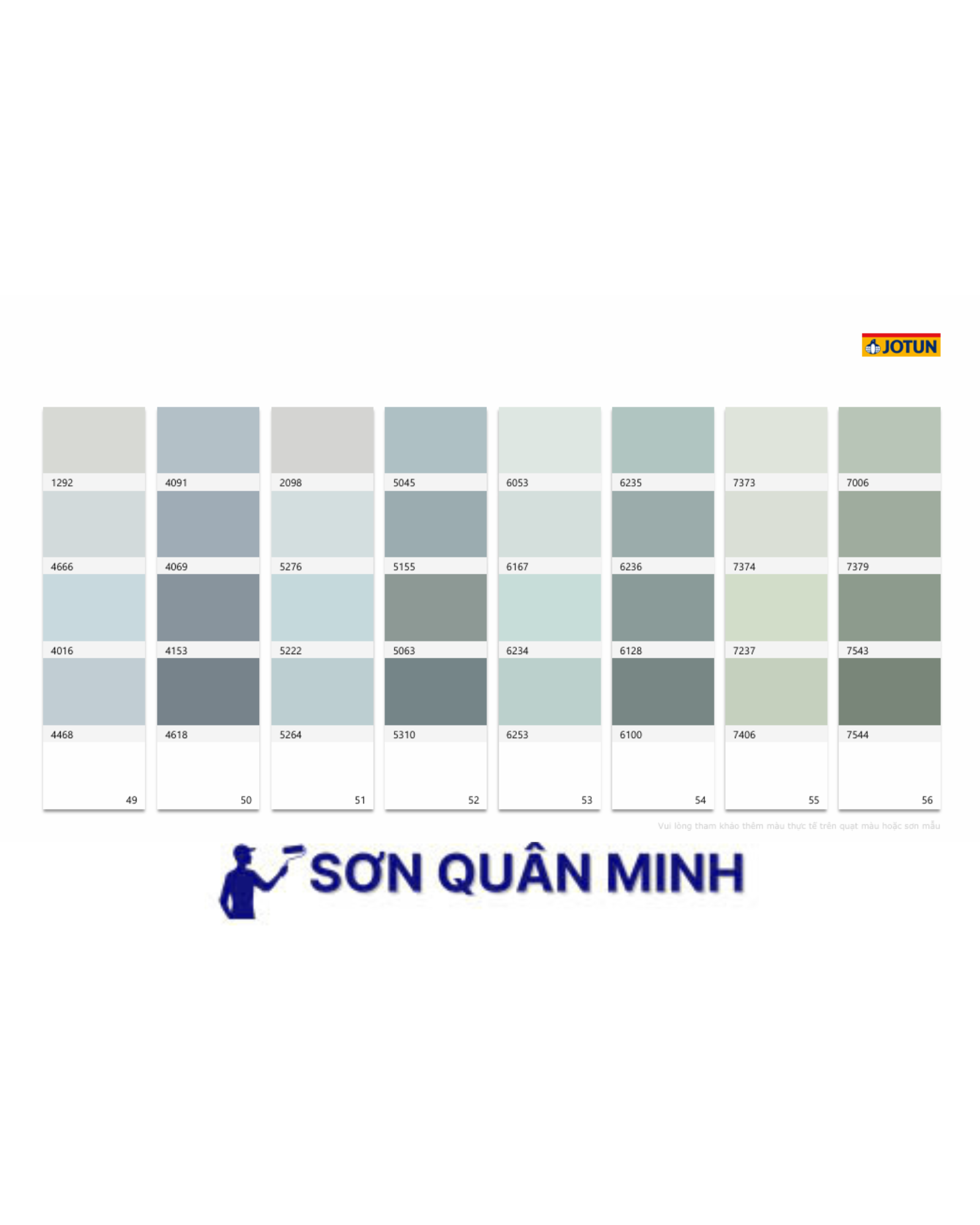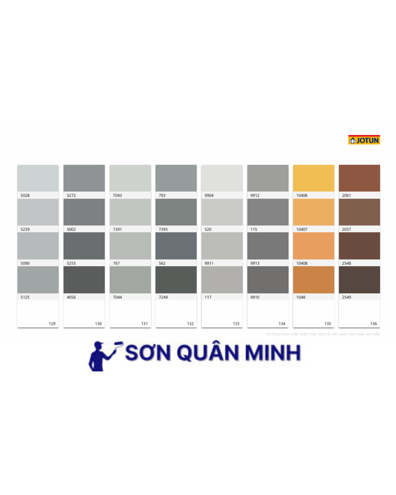 🌈 Các màu sơn Jotun được pha theo công nghệ Multicolor Tinting System, đảm bảo độ chính xác và đồng nhất tuyệt đối giữa các lần thi công.