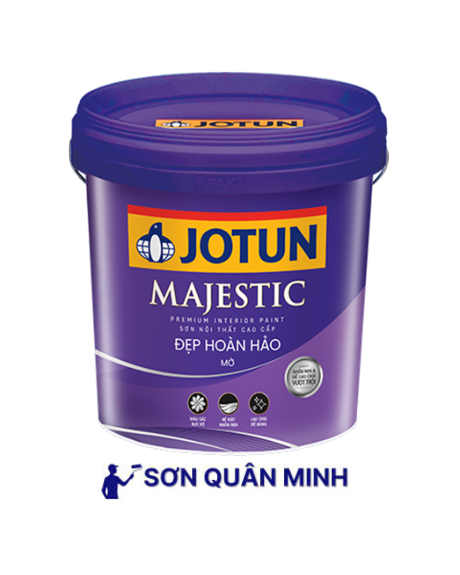 Jotun Majestic Đẹp Hoàn Hảo Mờ là dòng sơn nội thất cao cấp mang lại vẻ đẹp tinh tế và mềm mại cho không gian sống. Với bề mặt sơn mờ sang trọng, sản phẩm giúp che khuyết điểm tường hiệu quả, đồng thời thân thiện với sức khỏe và môi trường.